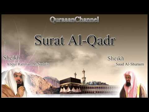 97- Surat Al-Qadr with audio english translation Sheikh Sudais & Shuraim - Shaykh Abdulrahman Al Sudais Shaykh Saud Al Shuraim Al Qadr - 97- Surat Al-Qadr with audio english translation Sheikh Sudais & Shuraim.
